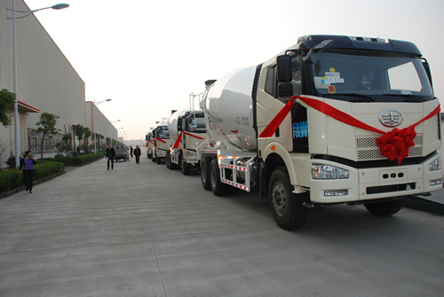 (上圖為水泥攪拌車發(fā)車現(xiàn)場(chǎng))
