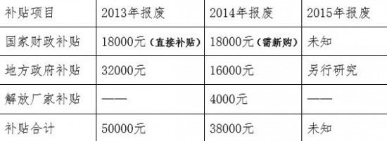 以上海為例:車主報(bào)廢2007年注冊登記的重型載貨車換購解放J6P牽引,2013-2015年不同年份報(bào)廢所享受的補(bǔ)貼如下: